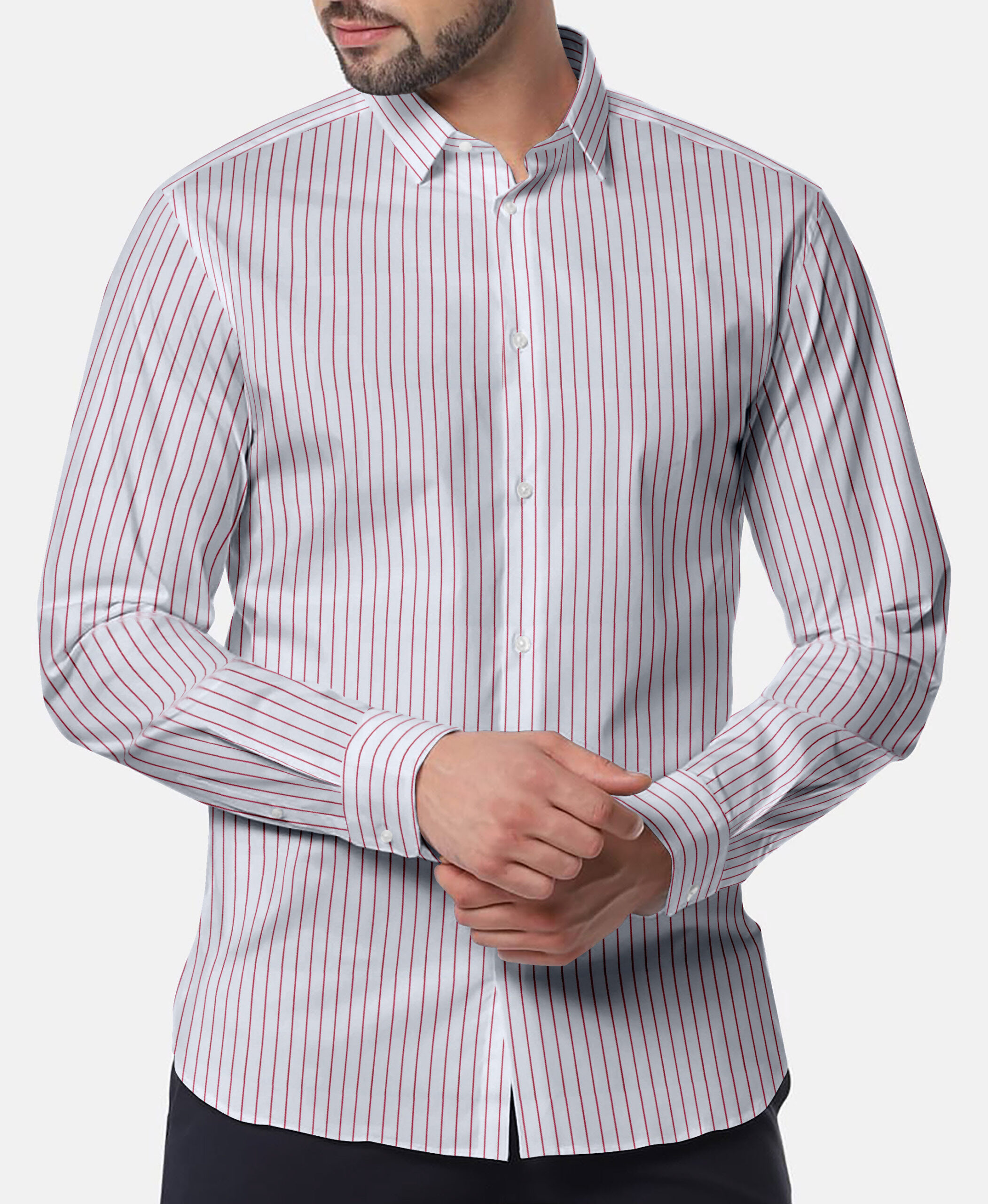 This fabric, crafted from pure verified cotton with an added 5% stretch blend, combines the natural comfort of cotton with just the right amount of flexibility. The extra stretch allows for ease of movement while maintaining a crisp, refined look, making it an ideal choice for those who prioritize both comfort and style. Perfect for all-day wear, this blend ensures a polished appearance with enhanced durability and resilience.